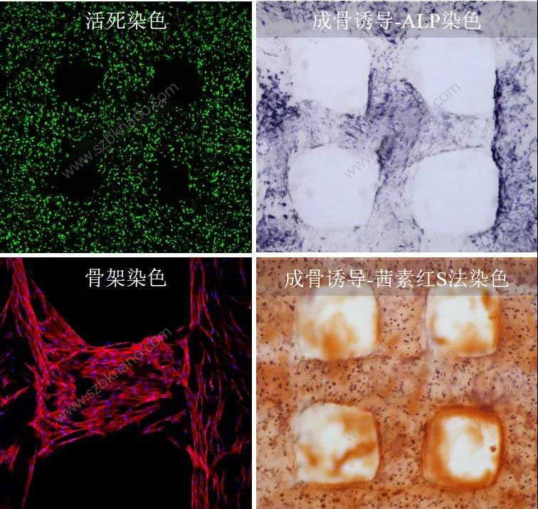 GelMA已廣泛用于干細胞、癌細胞、內皮細胞、神經細胞等各類細胞的培養,細胞存活率大于90%,細胞功能化良好。