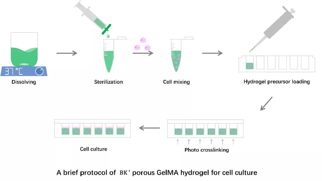 圖1 BKNM-GM-PR系列多孔GleMA水凝膠操作流程