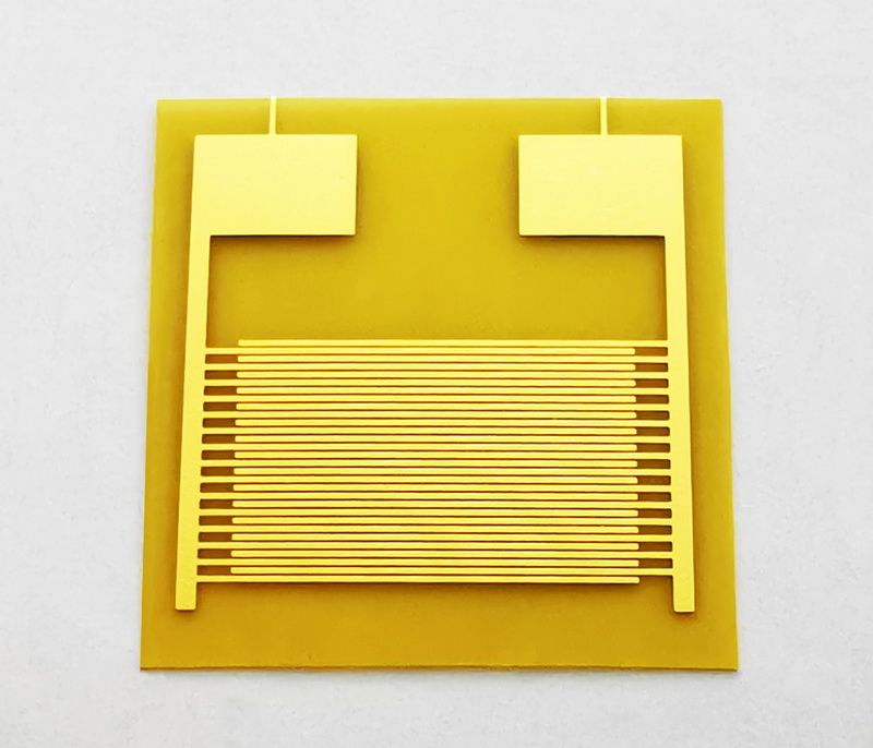 柔性PI叉指電極IDE醫療氣體生物濕度傳感器智能穿戴1.電極基材:聚酰亞胺(PI),厚度13 u m,外形尺寸10mm*10mm。有加固襯底,易操作。