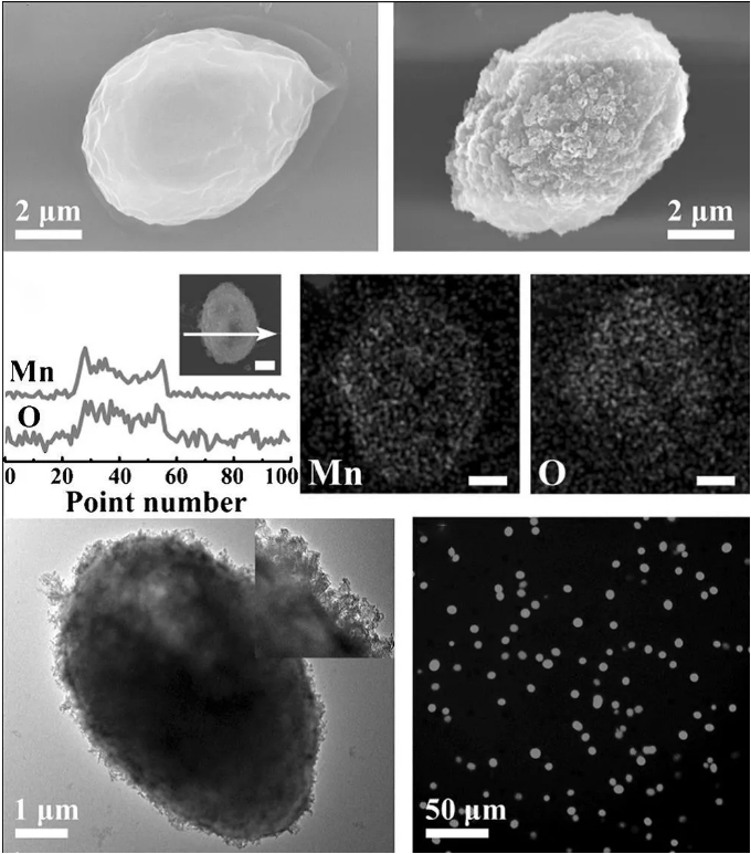 應用領域:具有多酶活性:類過氧化氫酶、類超氧化物歧化酶、類谷胱甘肽過氧化物酶,具有抗氧化功能;其類過氧化氫酶活性可以分解腫瘤微環境中的H2O2超聲氧氣,從而解決光動力治療、聲動力治療、放射治療腫瘤的乏氧問題;其類谷胱甘肽過氧化物酶活性可以消耗腫瘤微環境中的抗氧化劑谷胱甘肽GSH,從而促進上述促氧化治療;與H2O2和GSH反應后,氧化錳納米酶降解為Mn2+,其能夠促進芬頓反應,催化H2O2產生羥基自由基,進一步促氧化治療腫瘤,同時產生的Mn2+具有磁共振成像功能;錳氧化物通常具有較強的近紅外光吸收能力,可用于光熱治療和光聲成像;Mn3O4具有一定磁性,可用于磁共振成像;分解H2O2產生氧氣泡,可用于超聲成像;還可以通過復合負載化療藥物、基因藥物等實現聯合治療