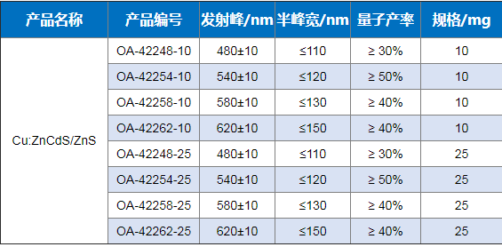 油溶性Cu摻雜ZnCdS 量子點(diǎn) PL 480 nm--620 nm
