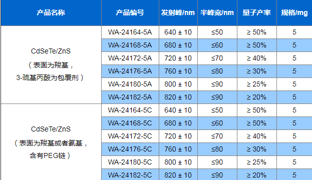 水溶性CdSeTe/ZnS 量子點 PL 640 nm--820 nm