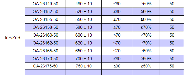 油溶性InP/ZnS 高亮綠光和紅光 PL 490 nm -- 750 nm