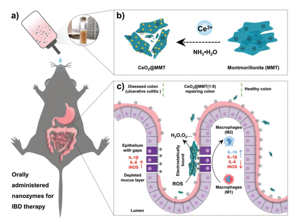 An Orally Administered CeO2@Montmorillonite Nanozyme Targets Inflammation for Inflammatory Bowel Disease Therapy