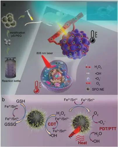 其他說明:密封狀態下保質期半年【主要優勢】具有過氧化氫酶樣活性和谷胱甘肽過氧化物酶樣活性;同時進行光熱治療(PTT)、光動力治療(PDT)和化學動力學治療(CDT)
