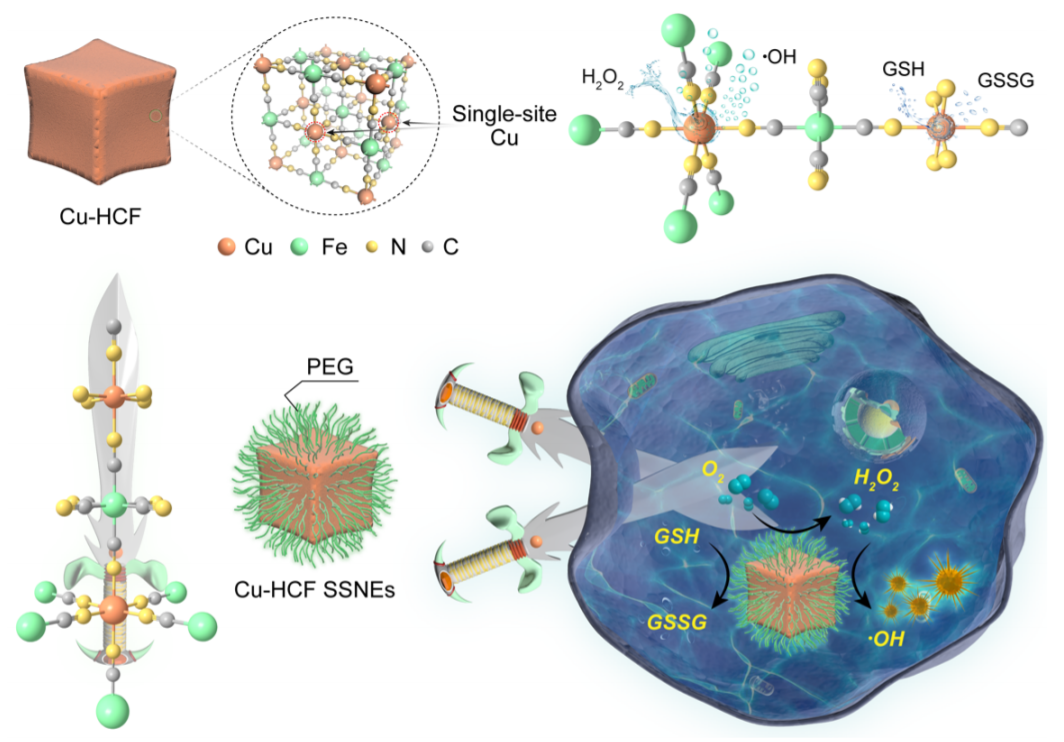 其他說明:密封狀態(tài)下保質(zhì)期半年【主要優(yōu)勢(shì)】1、具有單個(gè)銅活性位點(diǎn)的Cu-HCF納米酶在腫瘤微環(huán)境中具有級(jí)聯(lián)酶活性(谷胱甘肽氧化酶和過氧化物酶)。研究發(fā)現(xiàn),Cu-HCF單位點(diǎn)納米酶 (SSNEs)會(huì)首先發(fā)揮其谷胱甘肽氧化酶的活性以消耗細(xì)胞內(nèi)谷胱甘肽并將單位點(diǎn)CuII轉(zhuǎn)化為CuI來進(jìn)一步增強(qiáng)其過氧化物酶活性,從而產(chǎn)生大量的劇毒性羥基自由基,進(jìn)而促進(jìn)腫瘤細(xì)胞凋亡;實(shí)驗(yàn)結(jié)果表明,SSNEs可以有效抑制體內(nèi)腫瘤的生長(zhǎng),因此這一工作也為實(shí)現(xiàn)級(jí)聯(lián)納米酶的抗癌應(yīng)用提供了一種新型高效的平臺(tái)。