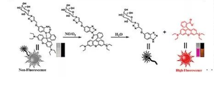 原料: 羅丹明B+鄰苯二胺+半乳糖 激發/發射波長:550/580nm 應用:NO檢測