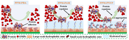 其他說明:密封狀態下保質期半年【主要優勢】PNVP在PPM表面形成水合層,使膜具有優異的抗污染能力。同時,PPM提供的大尺度疏水相互作用和PNVP提供的小尺度疏水相互作用共同促進了OMP的共聚集,賦予了NVPM高吸附能力。