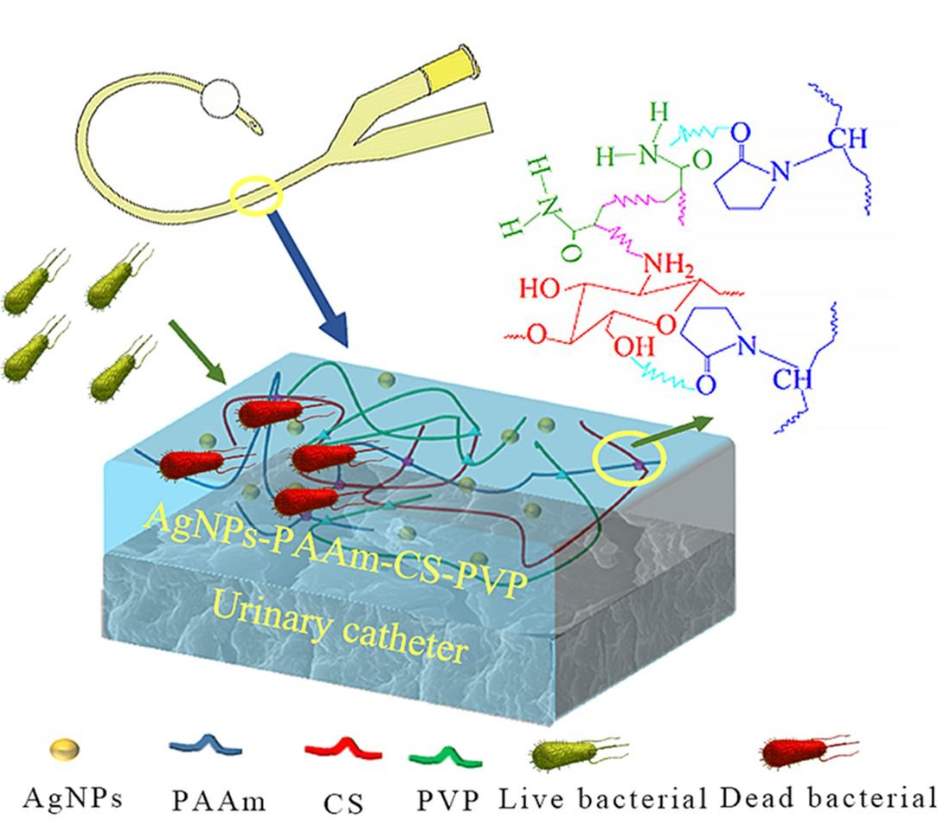 Antibacterial AgNPs-PAAm-CS-PVP nanocomposite hydrogel coating for urinary catheters