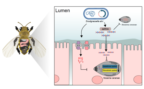 Engineered symbiotic bacteria interfering Nosema redox system inhibit microsporidia parasitism in honeybees