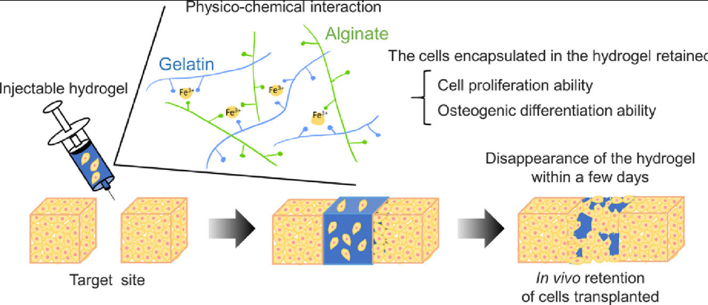 Design of injectable hydrogels of gelatin and alginate with ferric ions for cell transplantation