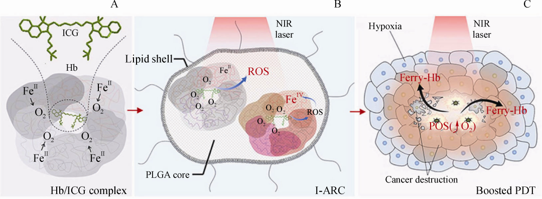 組成:血紅蛋白聚乙二醇化、Gb3+納米顆粒、光敏劑Ce6、聚多巴胺