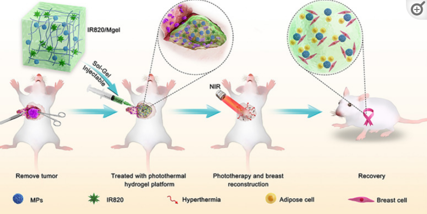 Photothermal hydrogel platform for prevention of post-surgical tumor recurrence and improving breast reconstruction