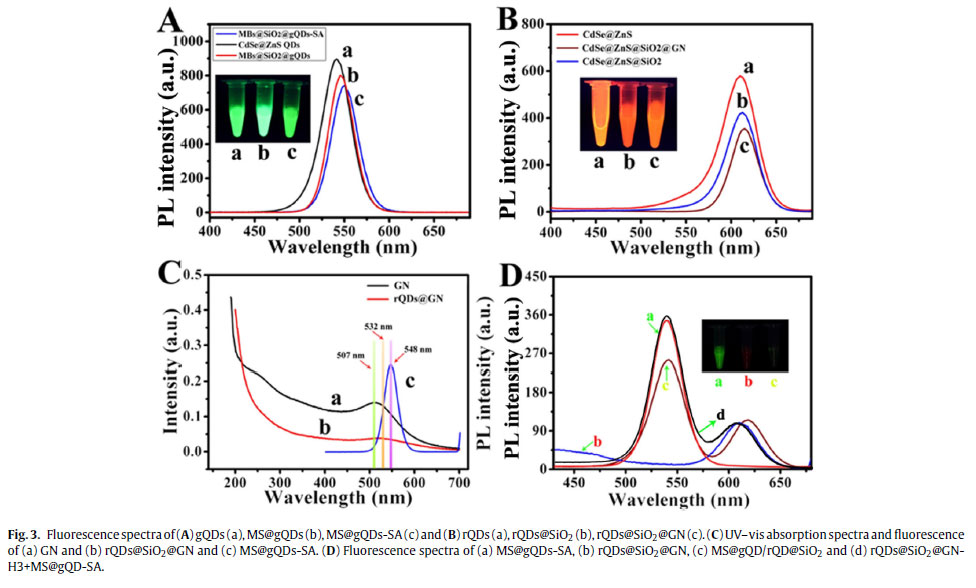 A fluorescent sensor for the specific and selective detection of Bt has been developed by the CdSe/ZnS quantum dots applied by Huazhong Agricultural University and Guangxi University for Nationalities: In detection, when there is no detection target, only the signal of gQDs exists in the fluorescence signal analysis. Output, the hairpin DNA structure is in an unopened state; when the detection target exists, the target DNA sequence will hybridize with the hairpin DNA to achieve an open loop, rQDs@SiO2 is captured by MBs@SiO2@gQDs@SA, and the connected whole is due to fluorescence resonance Energy transfer (FRET), the fluorescence intensity (I620) of rQDs increases, and the fluorescence intensity (I540) of gQDs decreases. Data analysis shows that ratio fluorescence (I620/I540) exhibits better linearity and higher sensitivity in Bt detection. This article was published in the latest issue of Sensors and Actuators B in 2017 hosted by Elsevier. The magazine has an impact factor of 5.4 in 2016 and belongs to the first area of the JCR journal of the Chinese Academy of Sciences. This research provides a new technical guidance scheme for the production of high-efficiency and high-stability quantum dot fluorescence sensors.