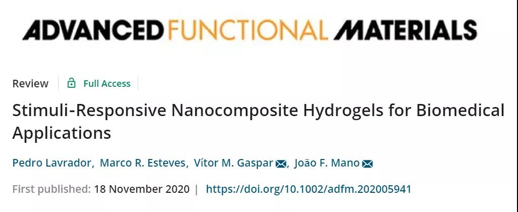 《AM》綜述:刺激響應性納米復合水凝膠在生物醫用領域的應用