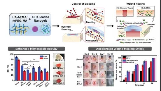 圖3. 透明質酸基納米復合水凝膠利用透明質酸酶在感染傷口時的過度表達。