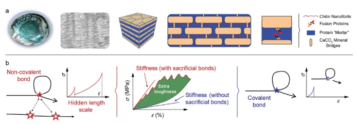 仿生材料工程可用于從潤濕行為到光學和機械材料的許多科學領域的先進功能材料的設計。生物機械材料特別具有啟發性,其在室溫下從有限的一組構筑材料中組裝并生長在水中,并具有剛度,強度和韌性以及輕巧性的獨特組合。例如,木材,珍珠層,甲殼類表皮和蜘蛛絲等一些天然材料。其中成分的精準排列和平衡的分子能量耗散機制可以克服單個成分的不足,并導致材料具有超越添加劑的優異協同性能。它們構成了未來結構材料工程關于成型以及屬性方面的范式,即使用可持續的建筑構件和節能途徑,以及在實現新的高性能和高性能材料種類,以及在可移動技術中提高能源效率所需的輕質結構材料。