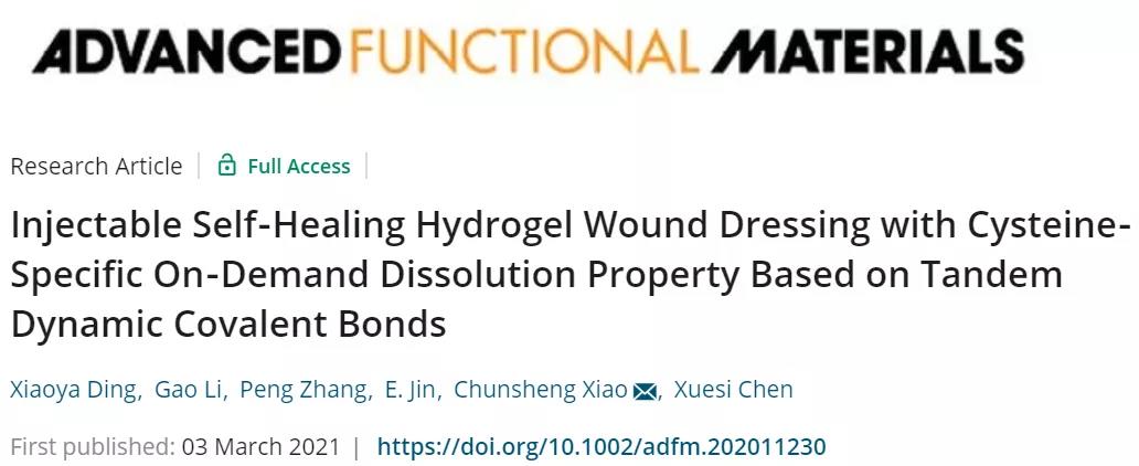 長春應化所陳學思院士、肖春生副研究員《AFM》:開發串聯動態共價鍵、可注射、自愈的水凝膠傷口敷料