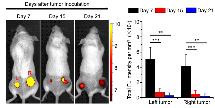 圖3. P22 VLP的腫瘤靶向富集效率與腫瘤進(jìn)程呈負(fù)相關(guān)