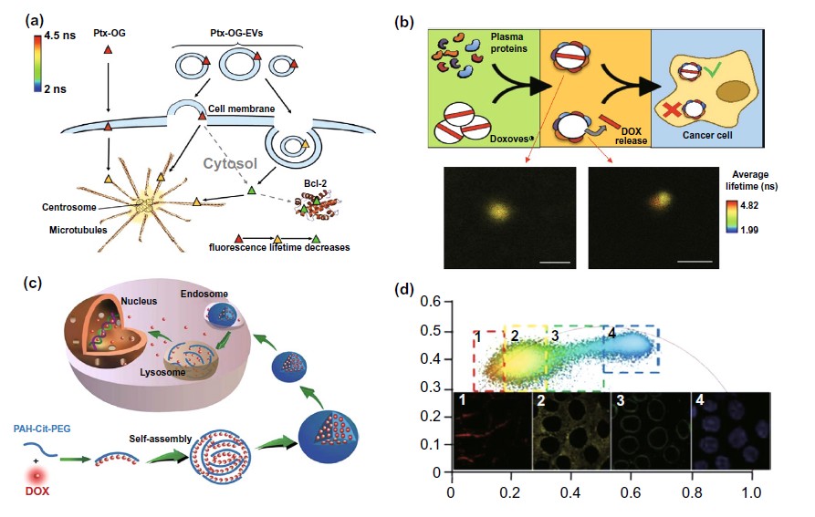 4. 利用熒光探針結合FLIM有望實現腫瘤外泌體中RNA檢測,而以阿霉素(Dox)為代表的抗癌藥物遞送也可與外泌體策略結合,使用FLIM監測優化。