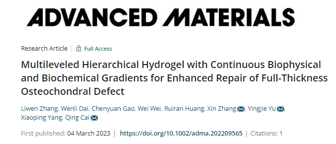 Adv. Mater. 2023:層次化水凝膠用于增強全層骨軟骨缺損的修復