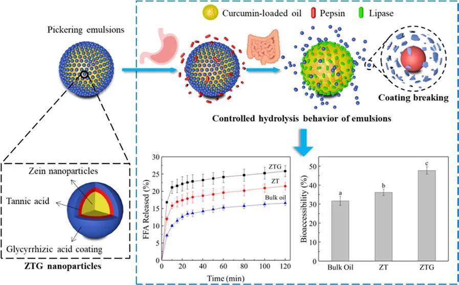 由涂覆有生物活性甘草酸的玉米醇溶蛋白納米顆粒穩(wěn)定的胃腸道 pH 敏感皮克林乳液,用于改善姜黃素的口服生物可及性