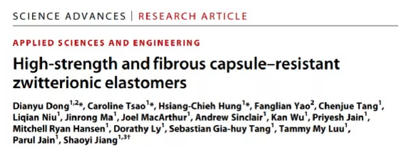 High mechanical strength and long-term resistance to fibrous capsule formation are the two main challenges for implantable materials. Unfortunately, these two different attributes are not fused together, but compromised. Recently, Dianyu Dong of Tianjin University and Caroline Tsao and Professor Hsiang-Chieh Hung of University of Washington collaborated to integrate two weak zwitterionic hydrogels into elastomer-like high-strength pure zwitterionic water through "swelling" and "locking" mechanisms. Gel, thus reporting unique material categories. The related paper titled High-strength and fibrous capsule–resistant zwitterionic elastomers was published in Science Advances. These zwitterionic-elastomeric-networking (ZEN) hydrogels further show that they can effectively resist the formation of fibrous capsules after being implanted in mice for up to 1 year. This material with high mechanical properties and long-term fiber capsule resistance has never been available before. This work not only proves a class of durable and fiber-resistant capsule materials, but also provides design principles for zwitterionic elastomer hydrogels.