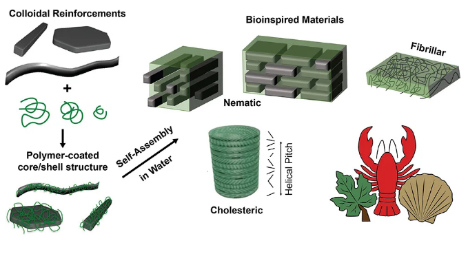 1) The author first outlines the definition of biomimetic nanocomposites and their self-assembly in them, and then conducts in-depth discussions to clarify mechanical properties and rational design to improve mechanical properties. Special emphasis is placed on materials formed on high-proportion reinforcements, and precise functional polymers that use self-assembly to build ordered structures, and detailed descriptions of how to design soft polymer phases based on thermomechanical properties and sacrificial supramolecular bonds.