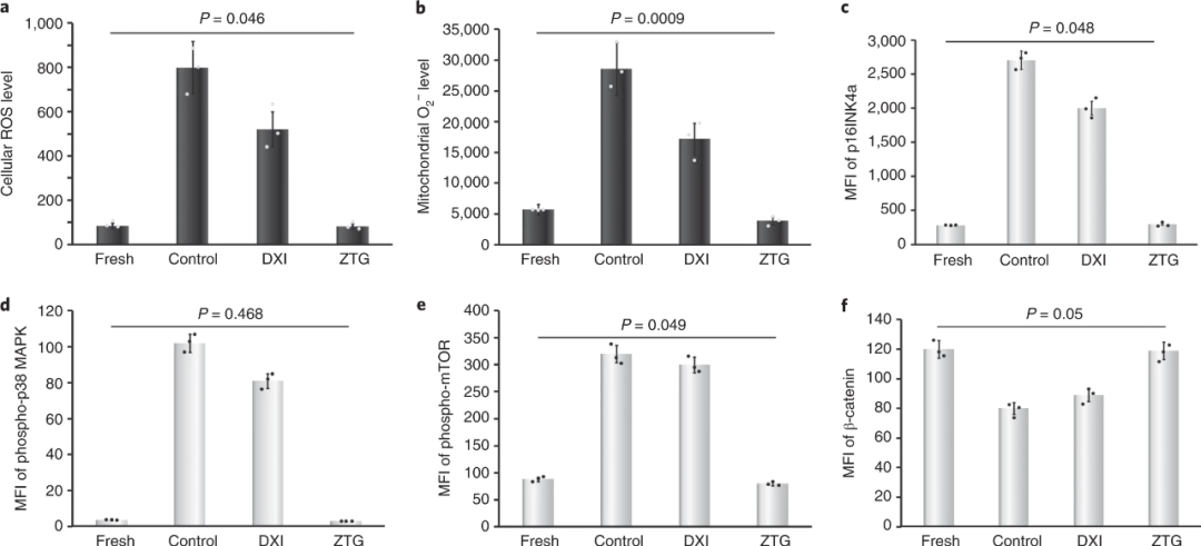 Under normal physiological conditions, the original HSPC resides in the hypoxic niche, which can limit the production of ROS by cells to protect themselves. In order to explore whether the ZTG hydrogel 3D culture can limit the generation of ROS and protect the encapsulated HSPC, the researchers tested the cell response after 1 day of culture in each system, as shown in Figure 4, comparing the DXI group and the control group, and the ZTG group The low levels of ROS and mitochondrial superoxide in the cells and no significant activation of non-specific signal pathways are conducive to HSPC to enhance self-renewal.