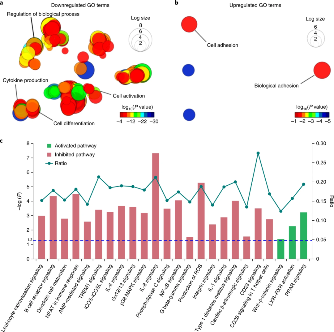 In order to gain a deeper understanding of the activity of CD34 + HSPC in the ZTG hydrogel, the researchers used mRNA deep sequencing (RNA-seq) to conduct gene expression profiling. As shown in Figure 6, compared with freshly isolated primary HSPC, the expression of more than 10,000 genes did not change significantly in ZTG-cultured HSPC. Compared with other culture methods, genes related to cell differentiation, cell activation and cytokine production in the ZTG culture group were significantly down-regulated, again indicating that the ZTG culture method can slow down cell metabolism.