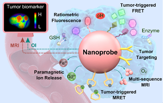 MRI Visualization nanoprobe is a method for visualizing nanoparticles using magnetic resonance imaging (magnetic resonance imaging, MRI) technology, which can be used to detect and image different diseases in living organisms, such as tumors, infection, inflammation, etc. The advantages of MRI visualization nanoprobes are high resolution, high sensitivity, no radiation, no background signal, which can provide multi-functional information, helping to realize the early diagnosis of disease, molecular typing, treatment evaluation and individualized treatment. There are many kinds of MRI visualization nanoprobes, which can be classified according to their responsiveness to different stimuli in an organism, such as pH responsive, reduction responsive, enzyme responsive, temperature responsive, etc. Among them, the tumor microenvironment-responsive MRI visualization nanoprobe is a nanoprobe that can sense and reflect the microenvironment differences between tumor tissue and normal tissue, such as pH value, oxygen concentration, reducing substances, enzymes, etc. Detection and imaging of tumor acidic environment were achieved using fluorine-19 (19F) nuclear-based tumor microenvironment-responsive MRI visualization nanoprobes. This technique uses a polymer containing 19F atoms to wrap iron oxide nanoparticles, which is closed in normal tissue and does not produce 19F signal. and structural changes in tumor tissue due to the decrease of pH, releasing 19F atoms and producing a strong 19F signal, realizing specific imaging of the acidic environment of the tumor. The technology can also be combined with anti-tumor drugs to achieve the integration of tumor diagnosis and treatment.