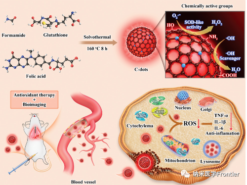 本研究的主題是紅光碳點(CDs),它是一種具有超氧化物歧化酶模擬酶活性(SOD)的納米材料,可以用于生物成像和改善急性肺損傷(ALI)。